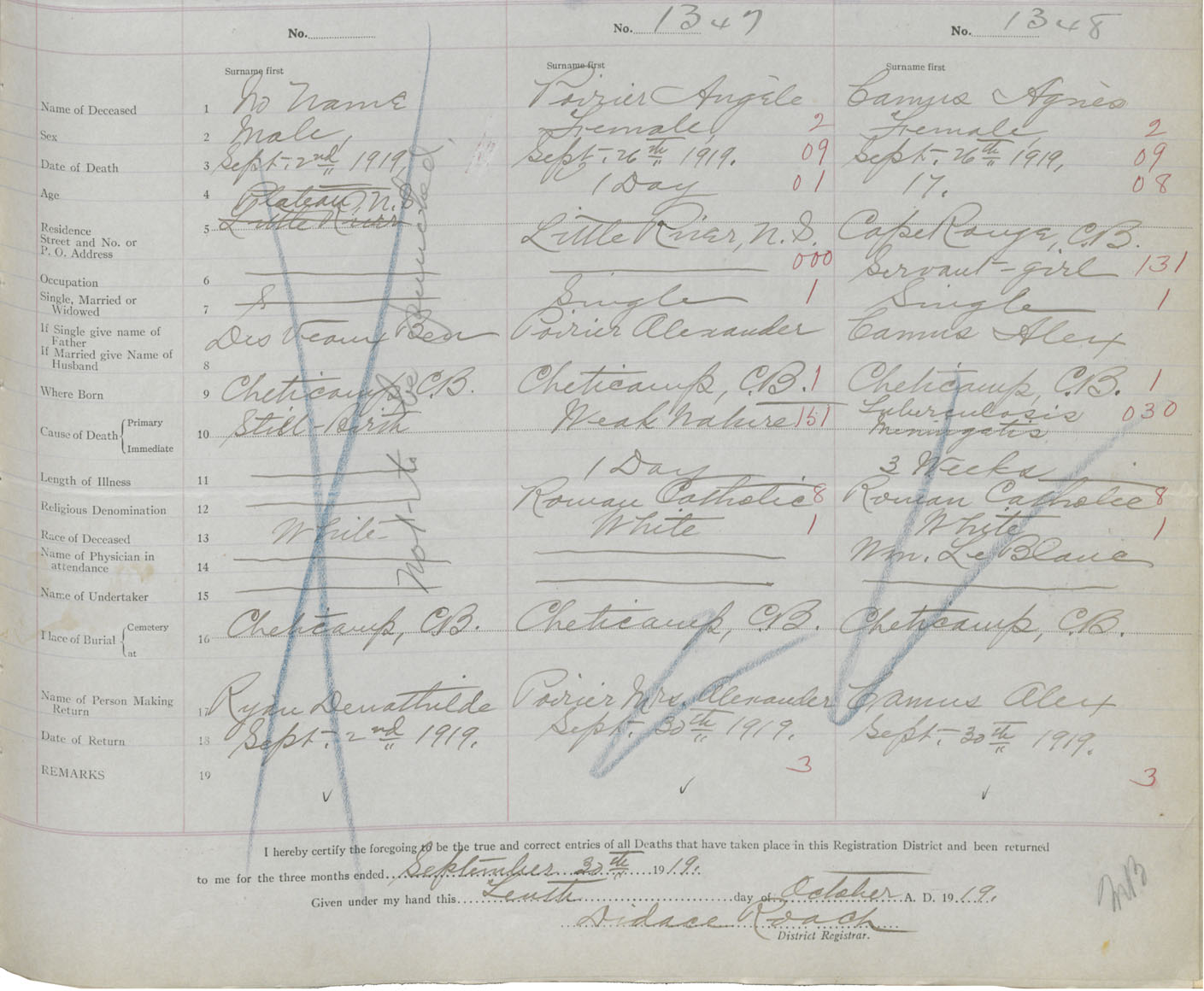 Death Registration: Year: 1919 book: 43 page: 463 number: 1348