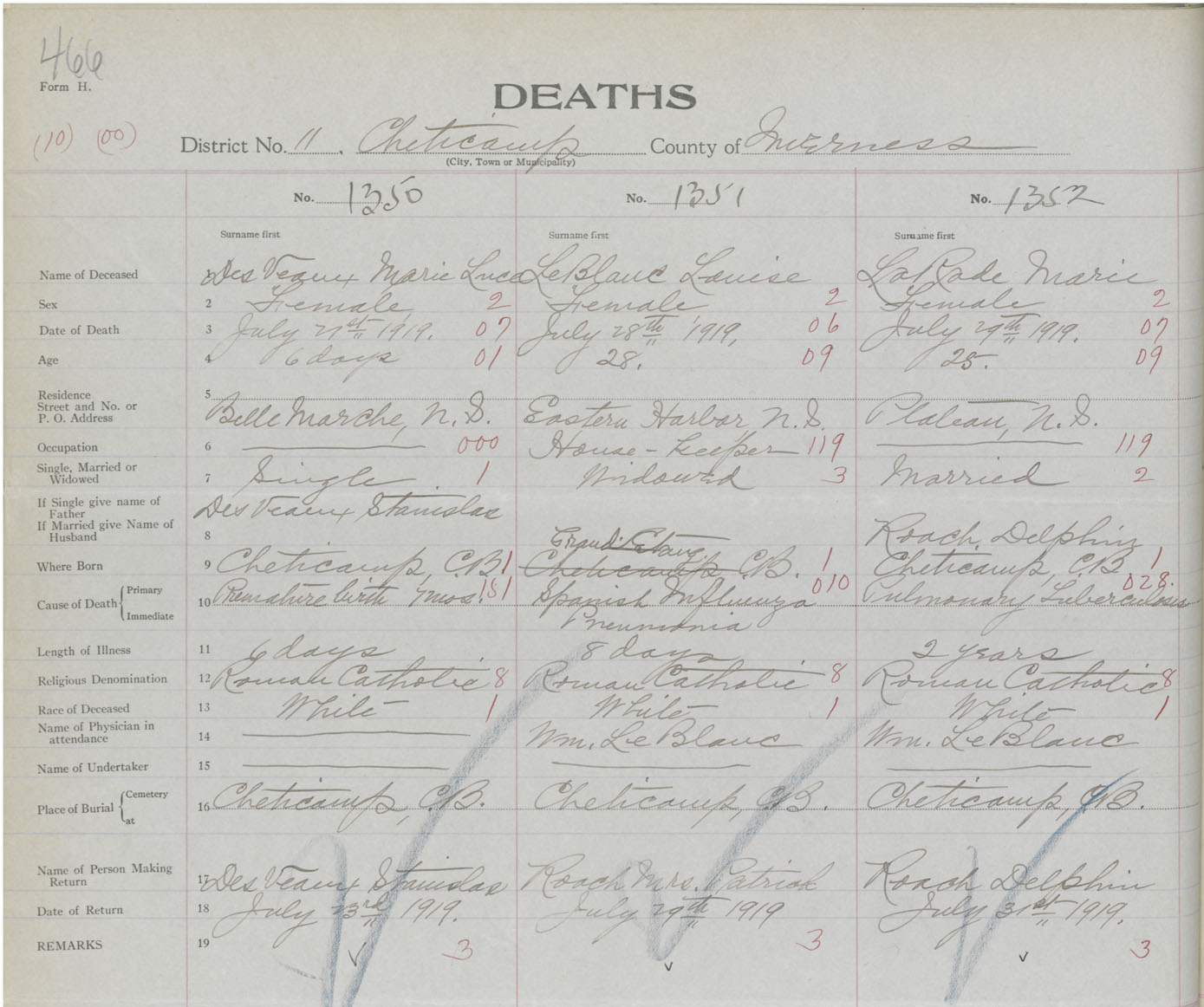 Death Registration: Year: 1919 book: 43 page: 466 number: 1352