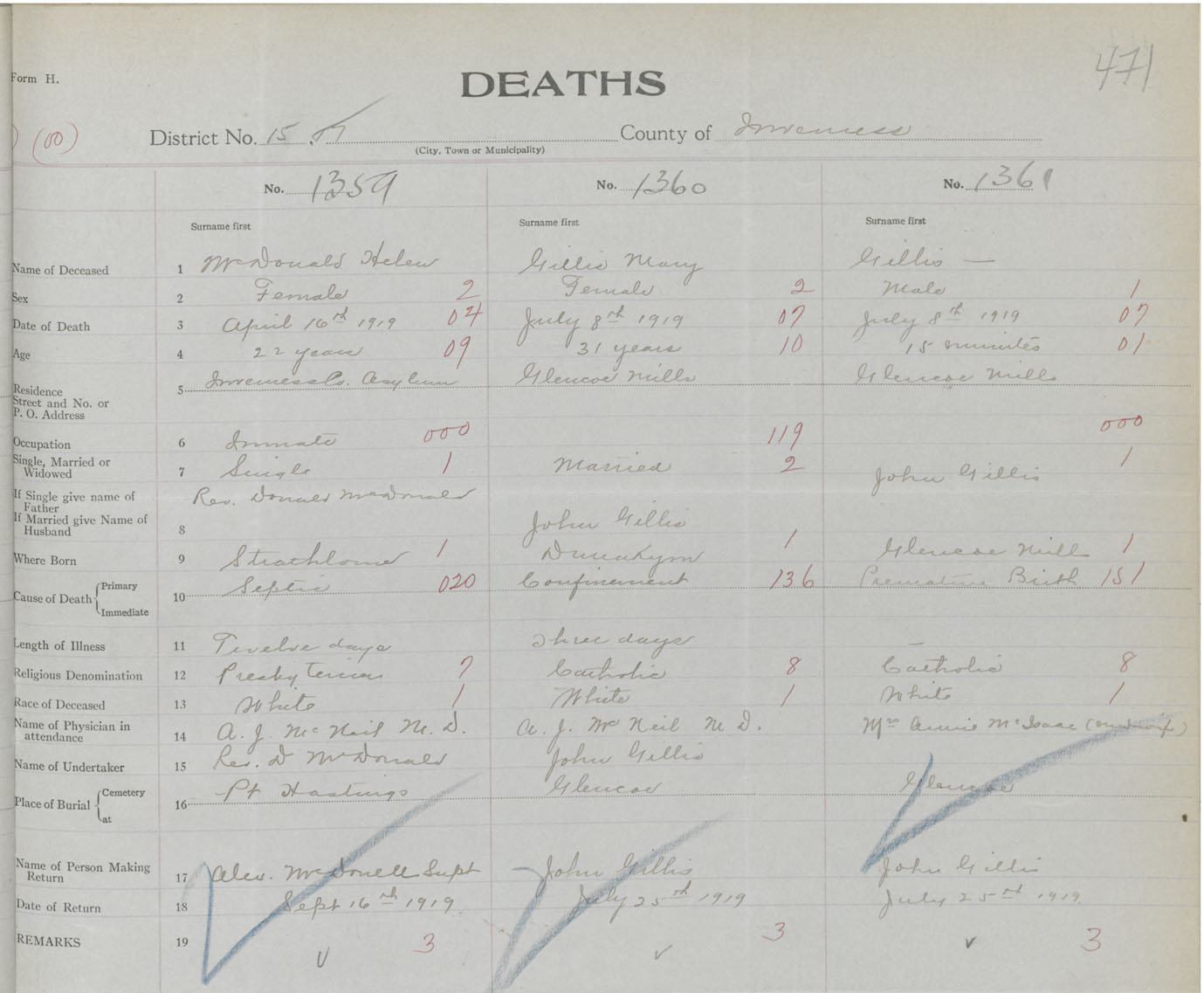 Death Registration: Year: 1919 book: 43 page: 471 number: 1361