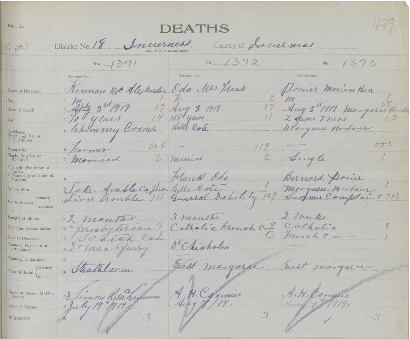 Death Registration: Year: 1919 book: 43 page: 479 number: 1371