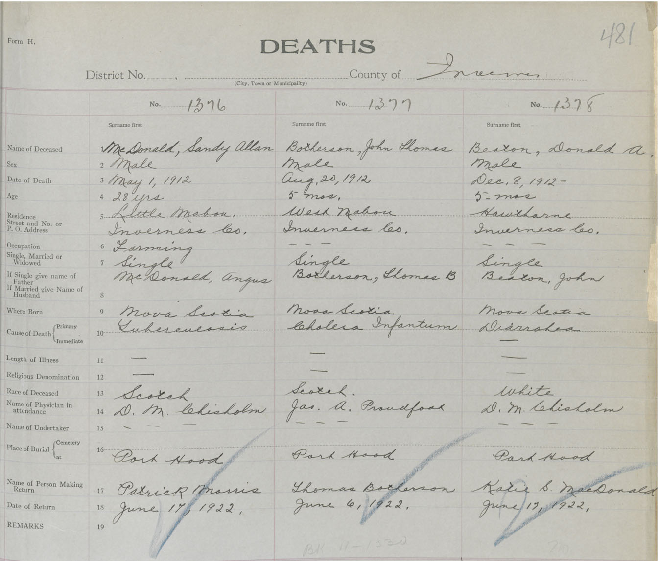 Death Registration: Year: 1912 book: 43 page: 481 number: 1376