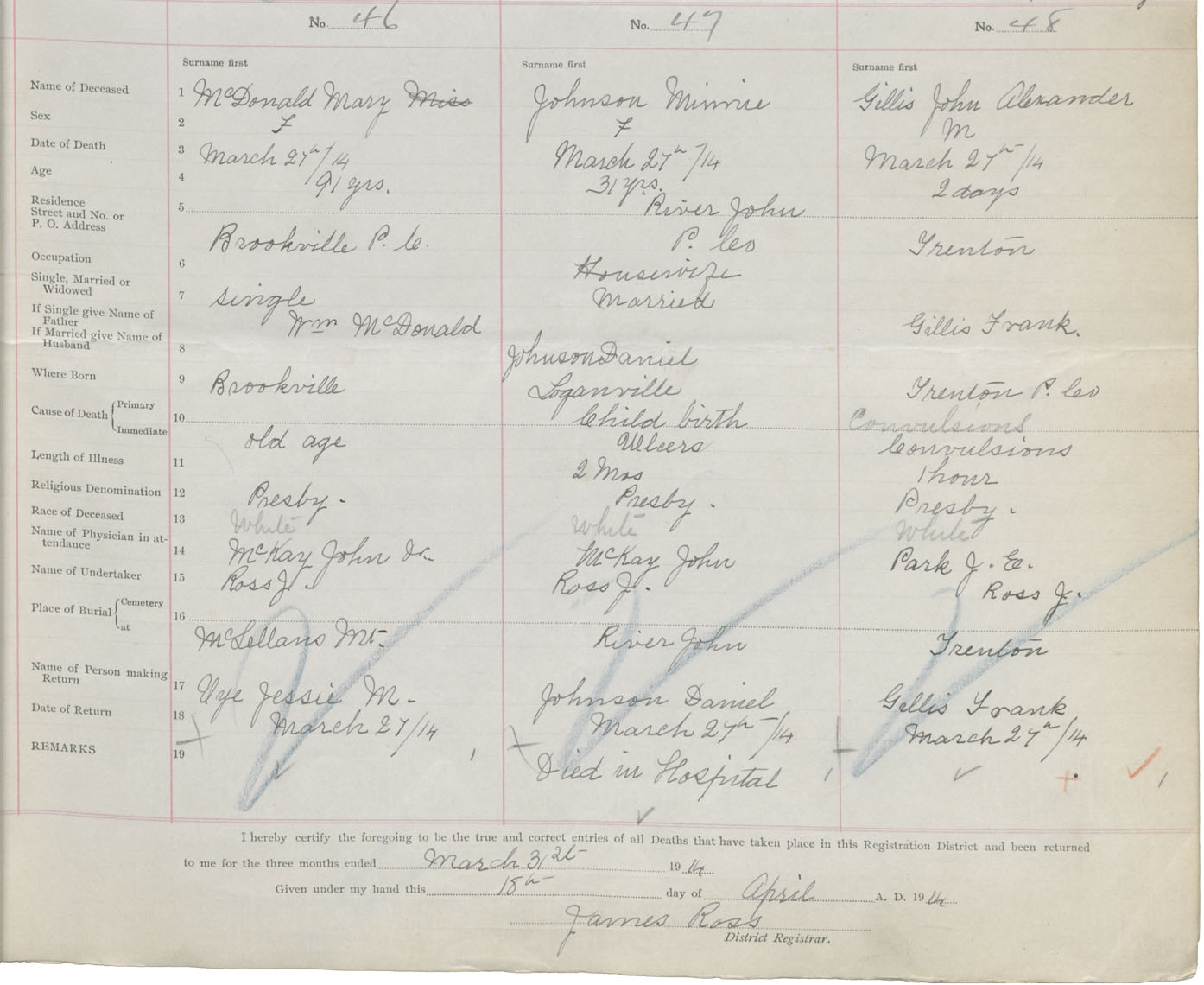 Death Registration: Year: 1914 book: 44 page: 9 number: 46