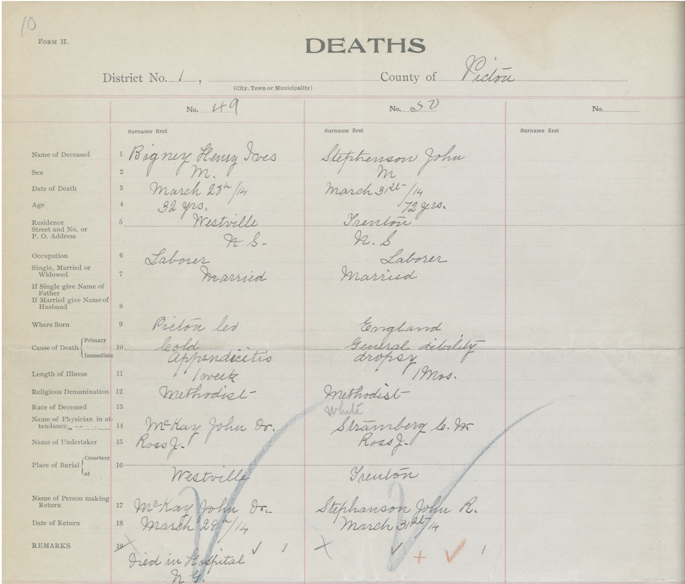Death Registration: Year: 1914 book: 44 page: 10 number: 49