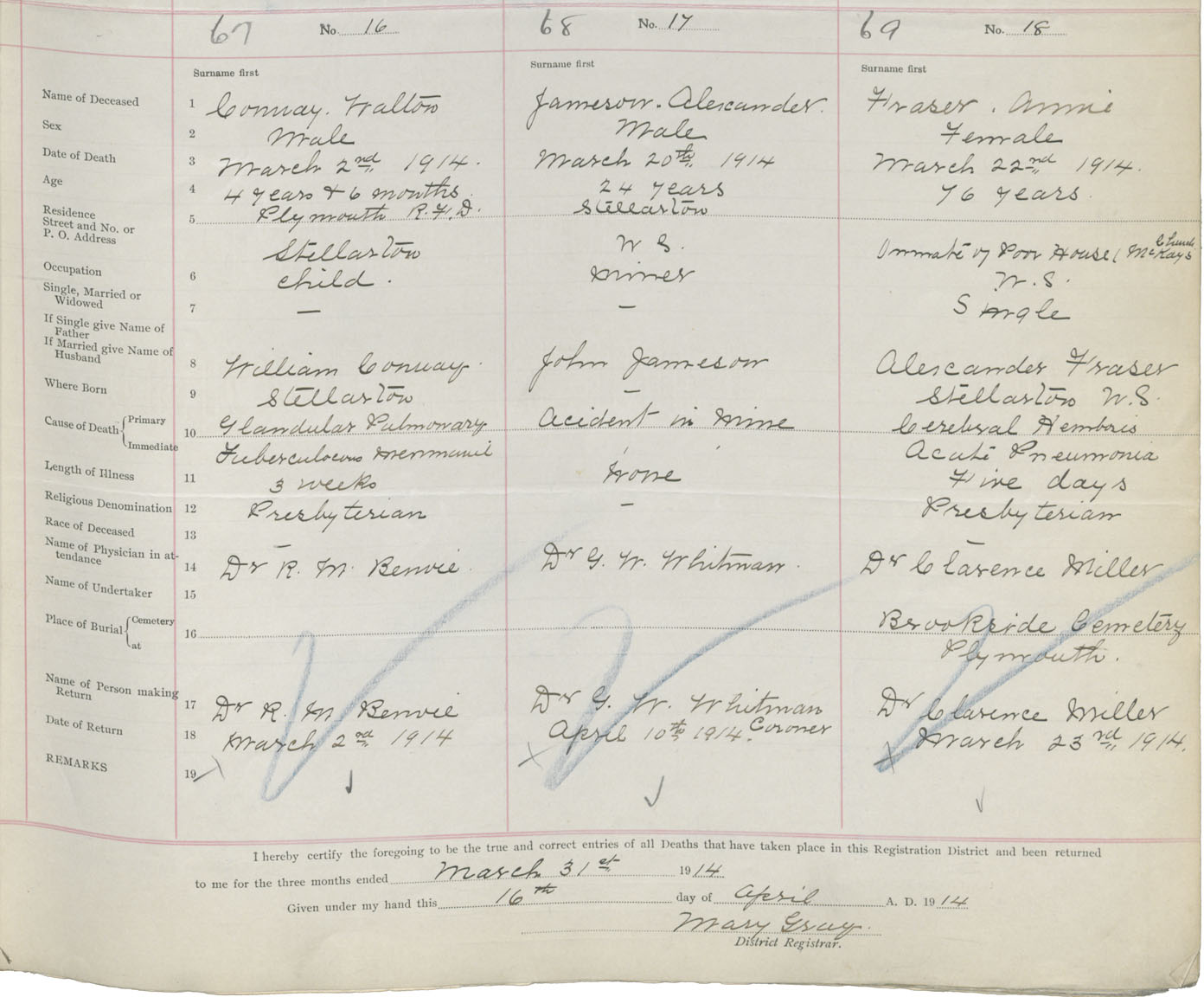 Death Registration: Year: 1914 book: 44 page: 13 number: 67