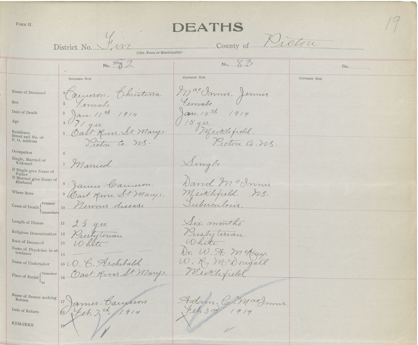 Death Registration: Year: 1914 book: 44 page: 19 number: 82