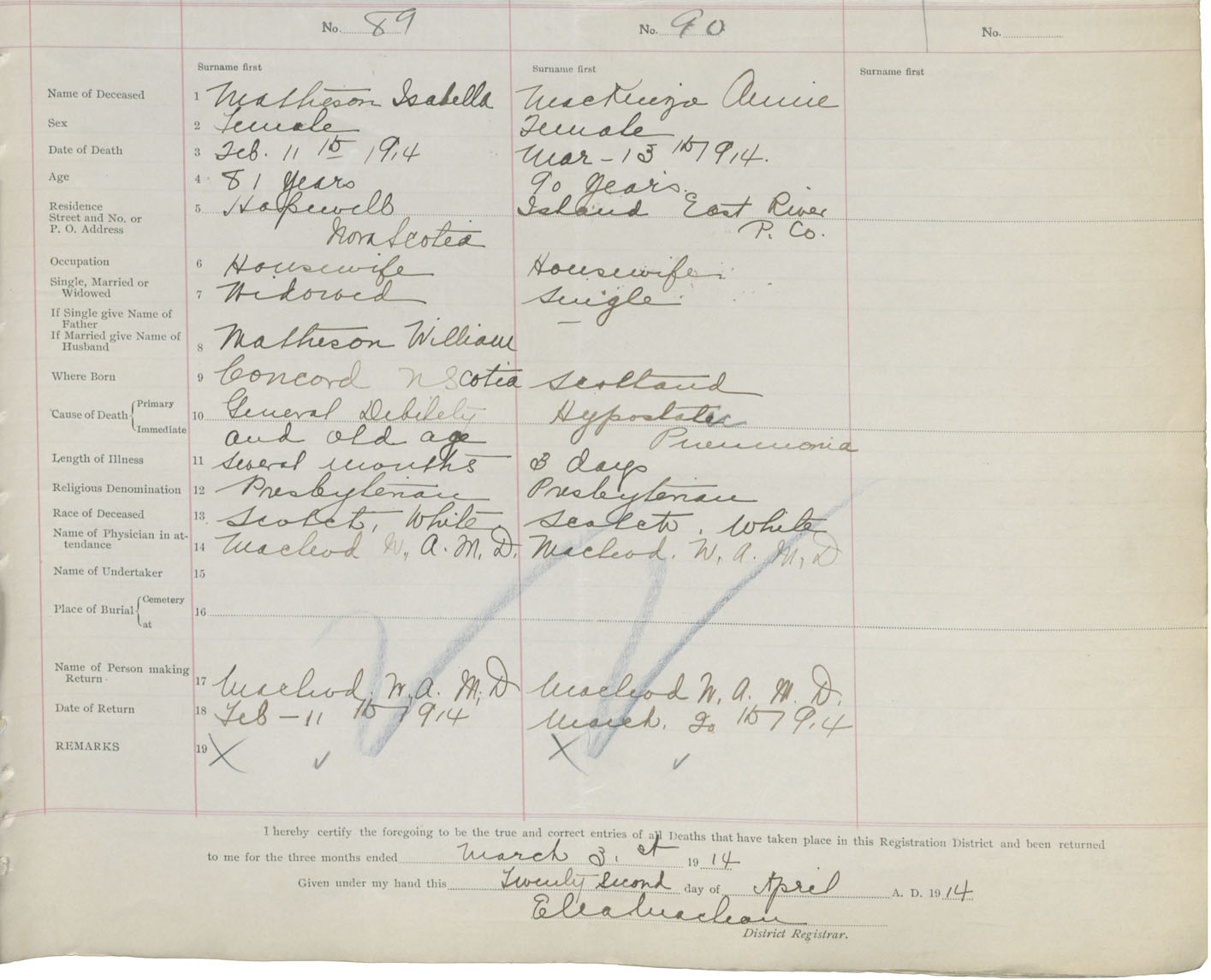 Death Registration: Year: 1914 book: 44 page: 23 number: 89