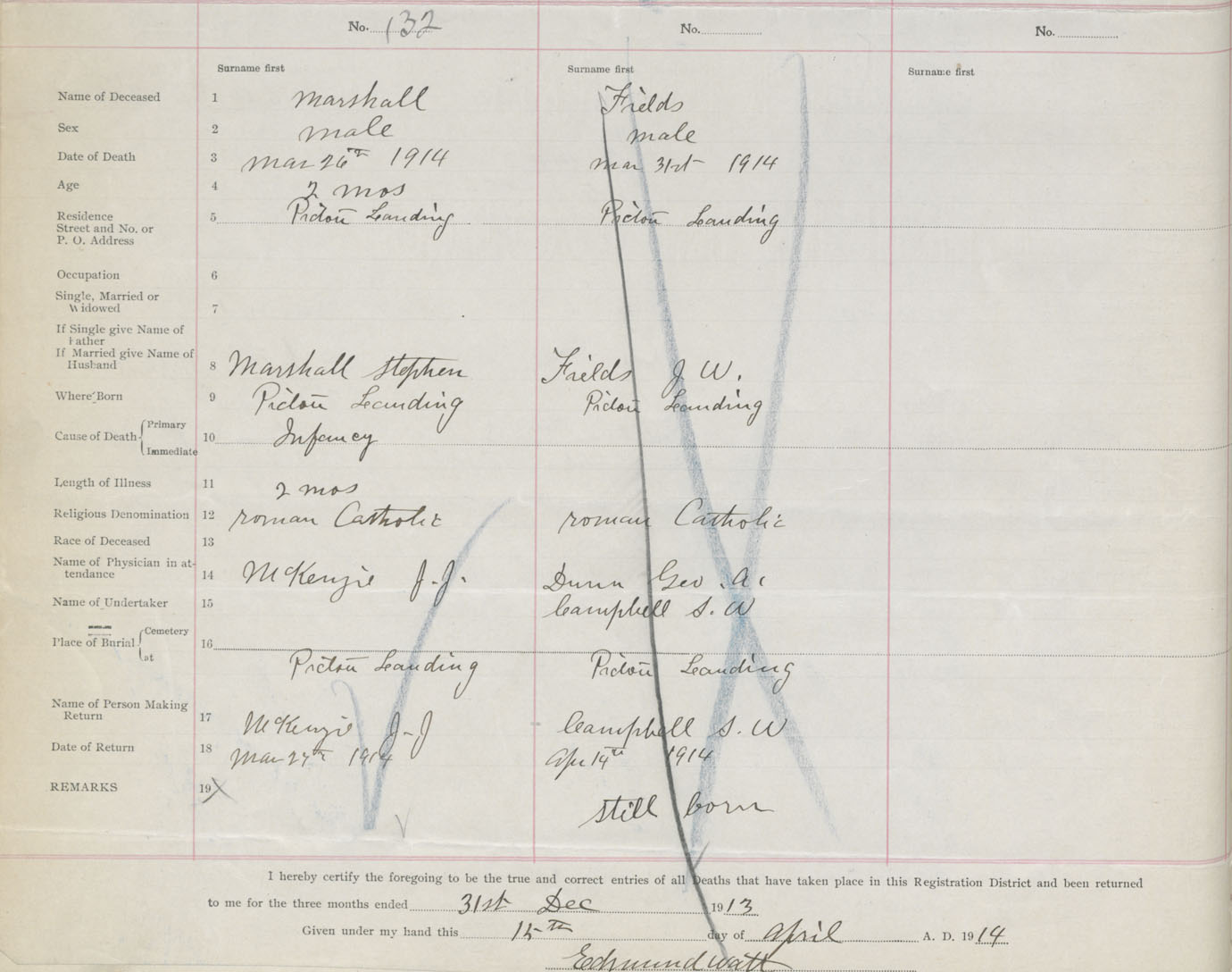 Death Registration: Year: 1914 book: 44 page: 36 number: 132