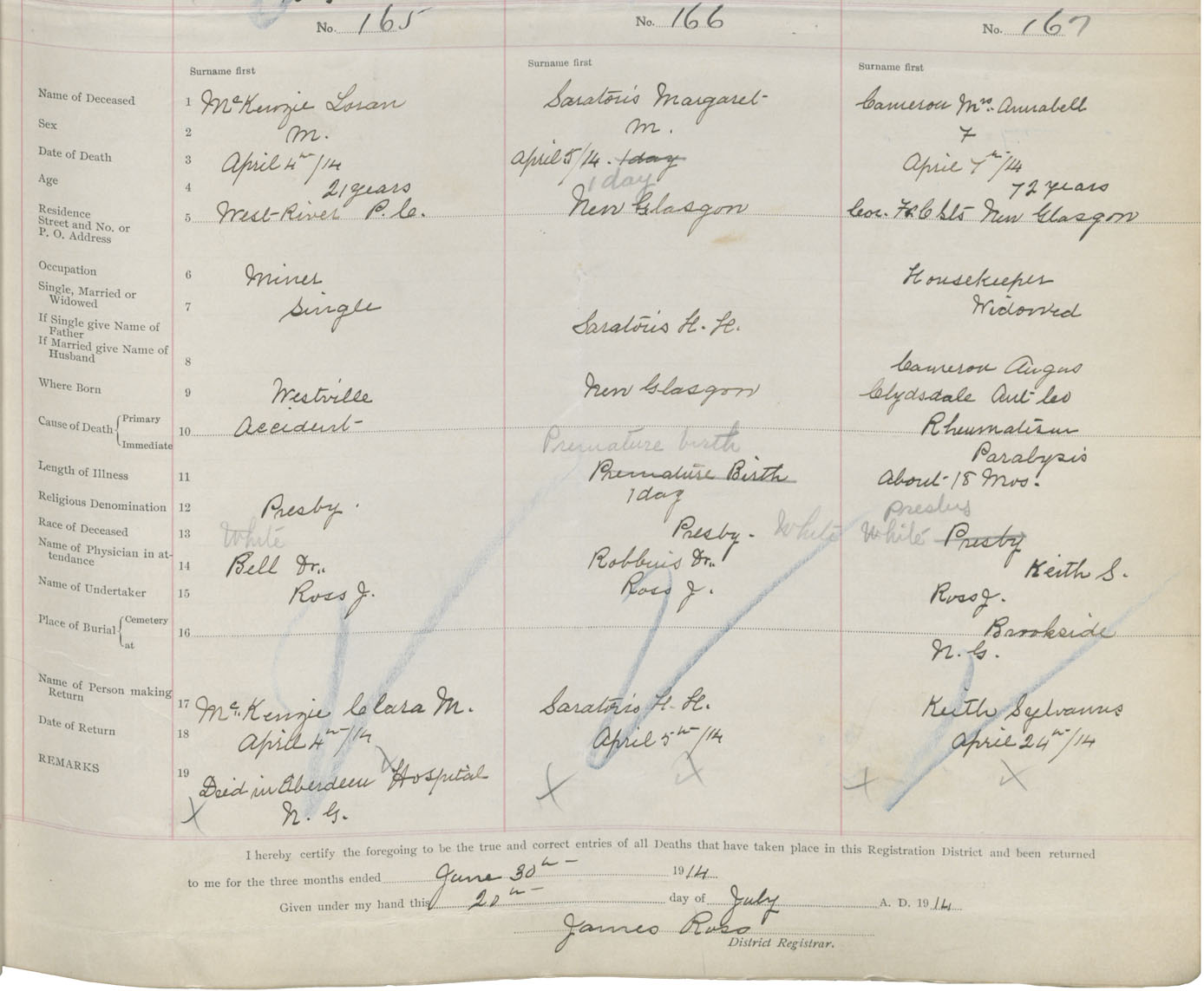 Death Registration: Year: 1914 book: 44 page: 43 number: 165