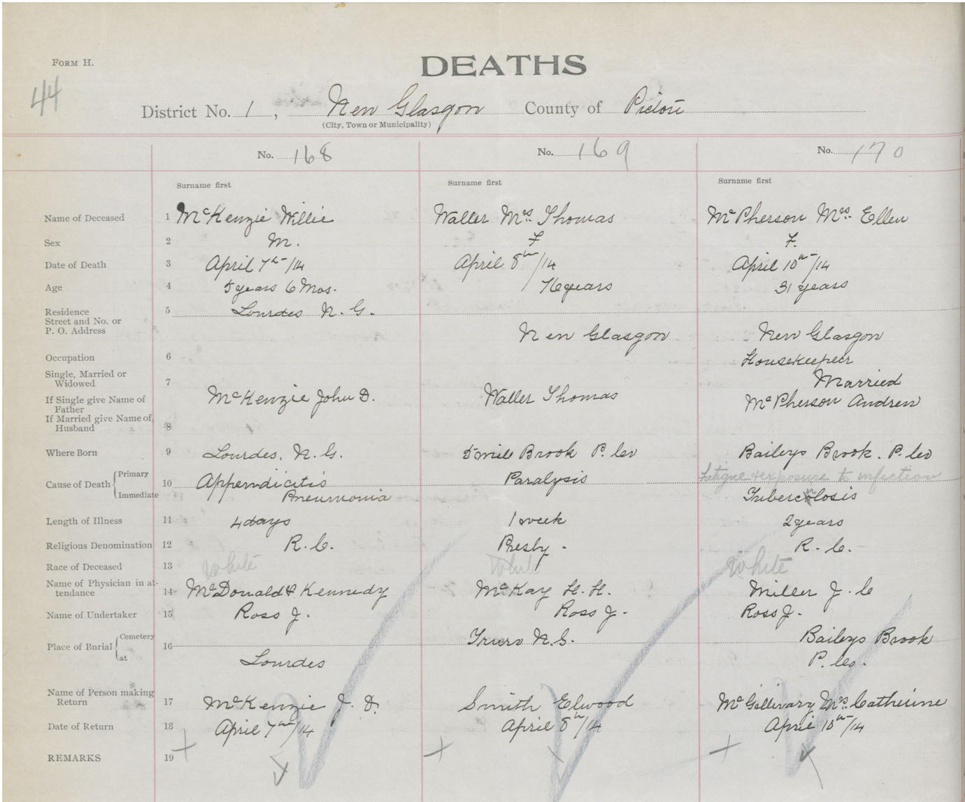 Death Registration: Year: 1914 book: 44 page: 44 number: 168