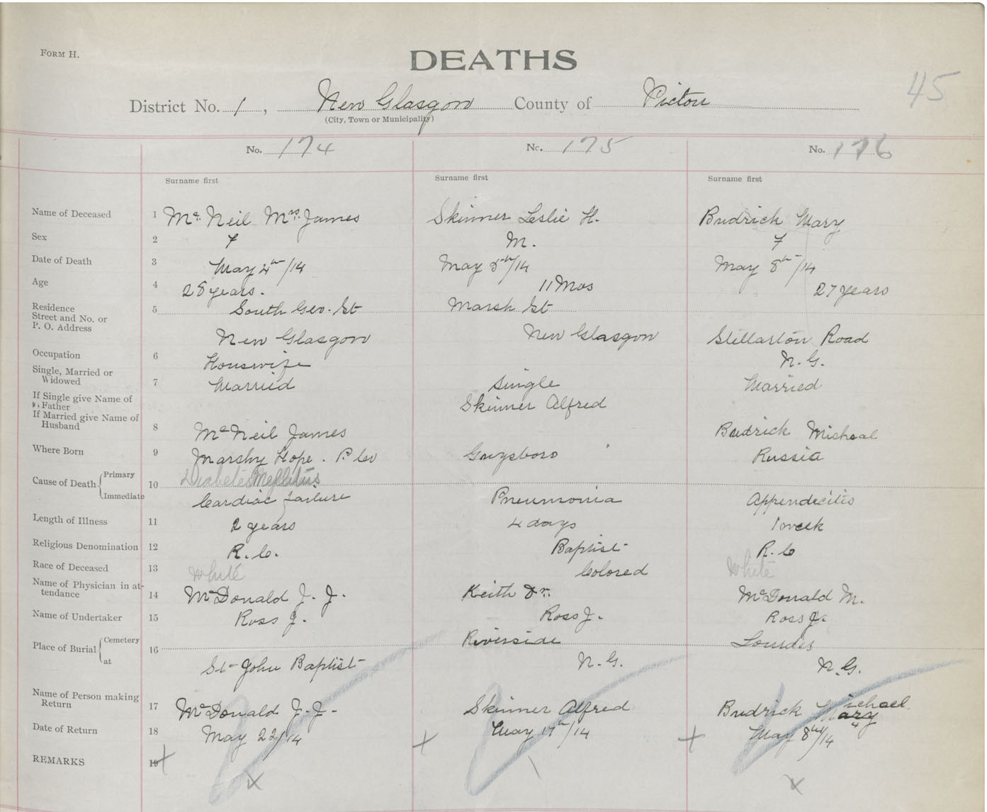 Death Registration: Year: 1914 book: 44 page: 45 number: 174
