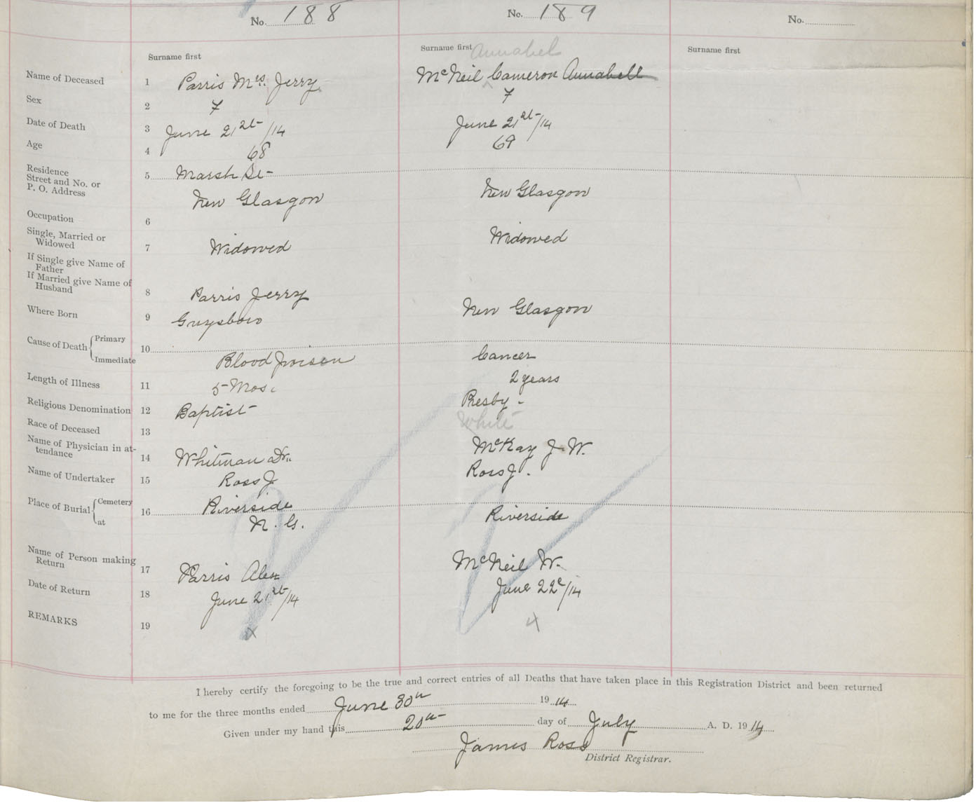 Death Registration: Year: 1914 book: 44 page: 47 number: 188