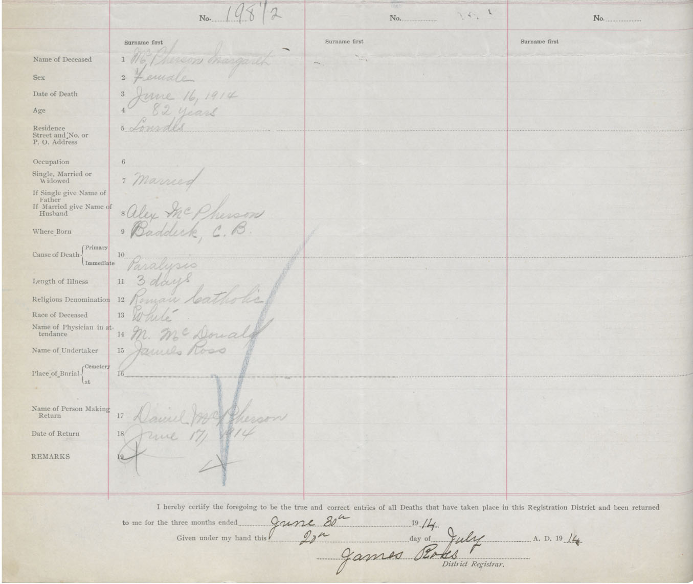 Death Registration: Year: 1914 book: 44 page: 50 number: 198