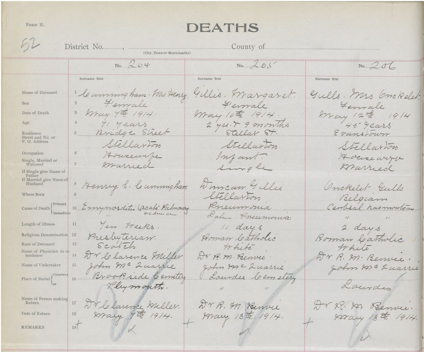 Death Registration: Year: 1914 book: 44 page: 52 number: 204