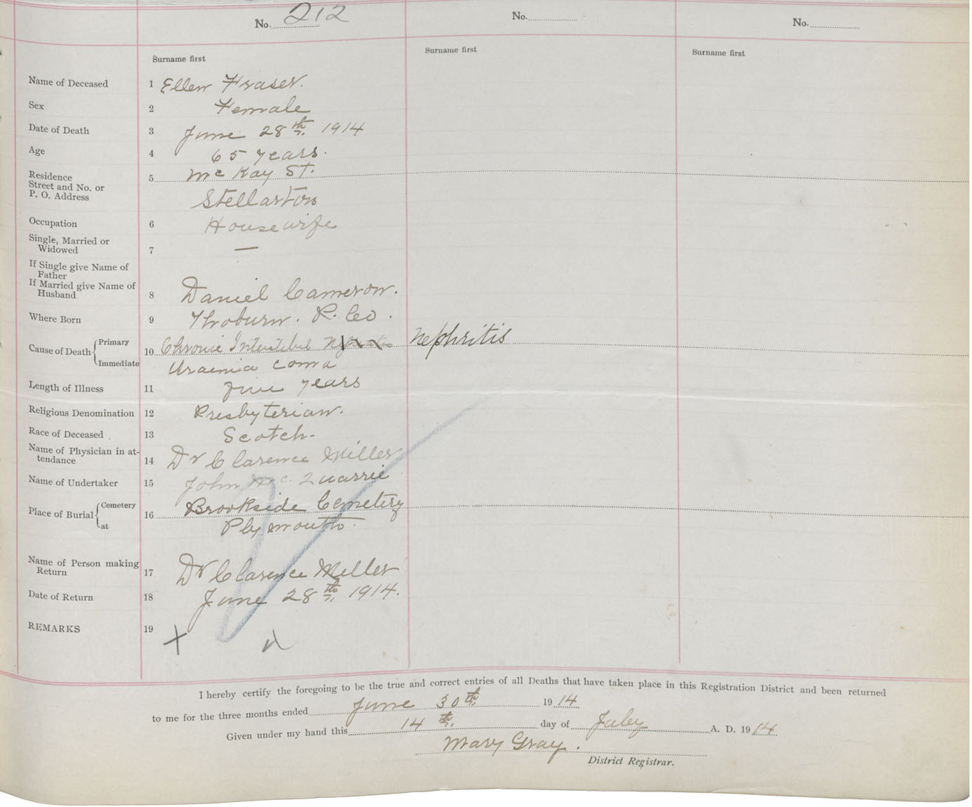 Death Registration: Year: 1914 book: 44 page: 53 number: 212