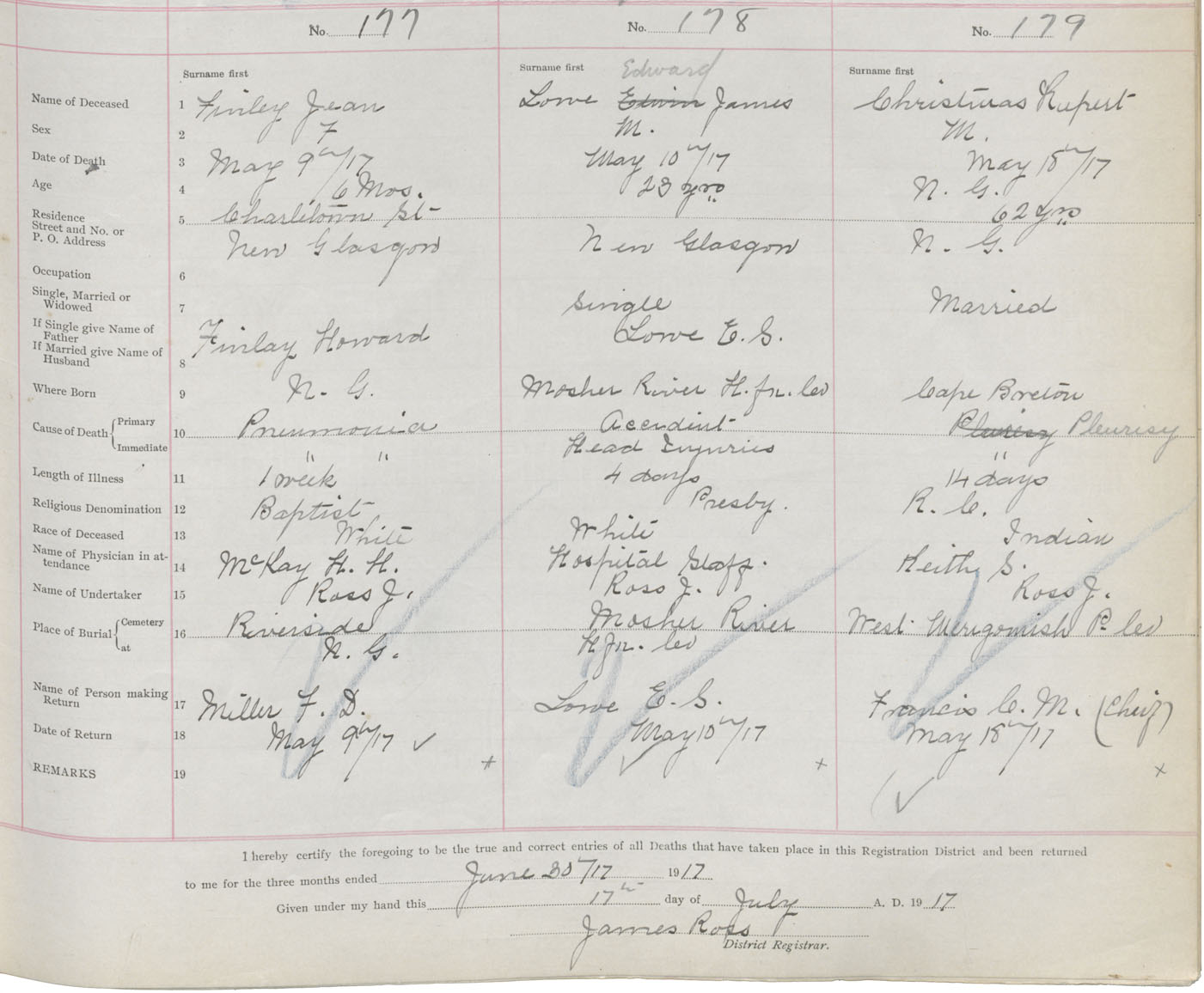 Death Registration: Year: 1917 book: 45 page: 49 number: 179