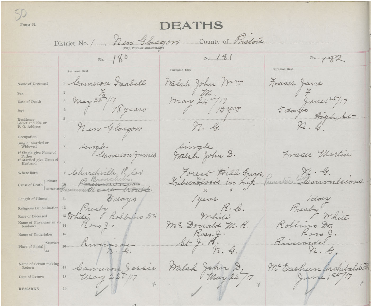 Death Registration: Year: 1917 book: 45 page: 50 number: 182