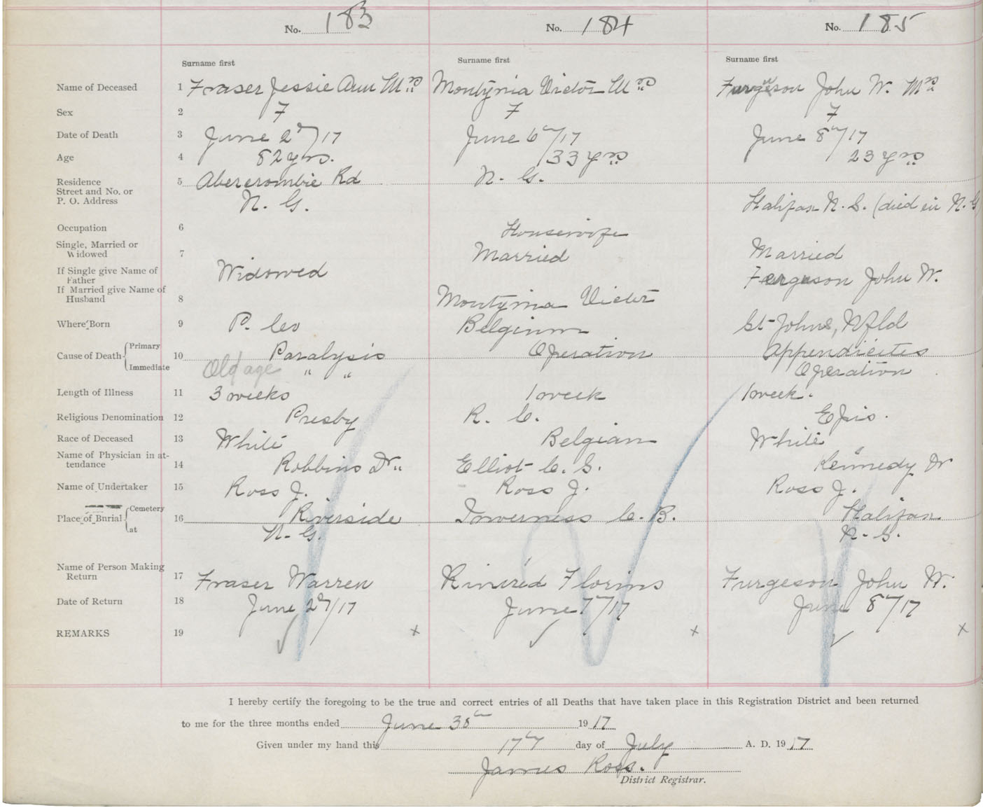 Death Registration: Year: 1917 book: 45 page: 50 number: 185