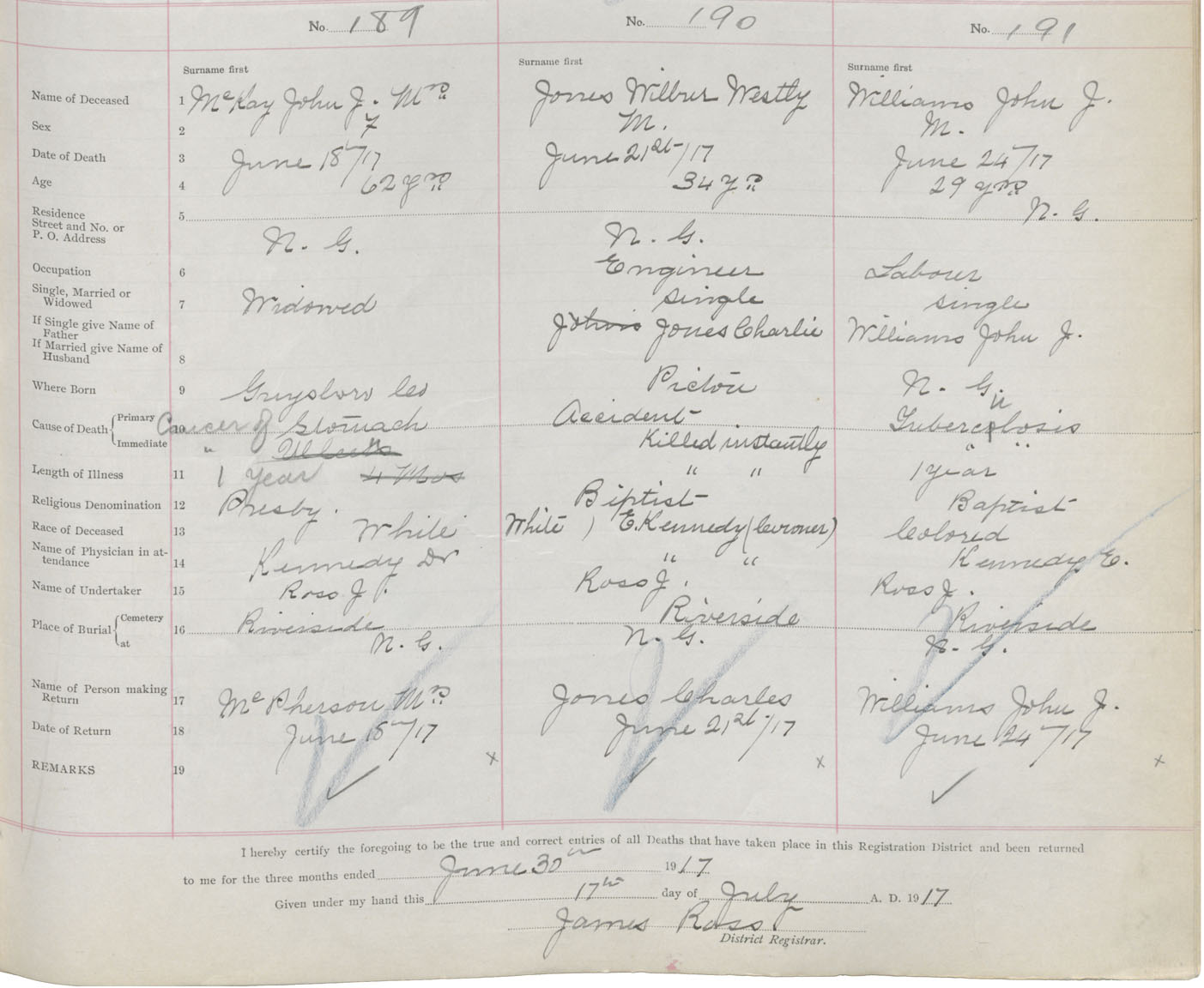Death Registration: Year: 1917 book: 45 page: 51 number: 191