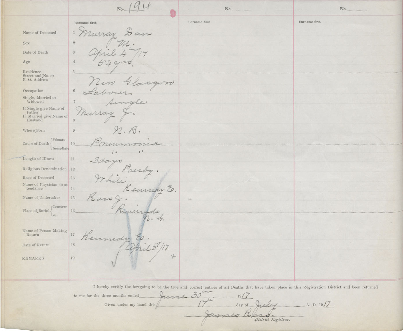 Death Registration: Year: 1917 book: 45 page: 52 number: 194