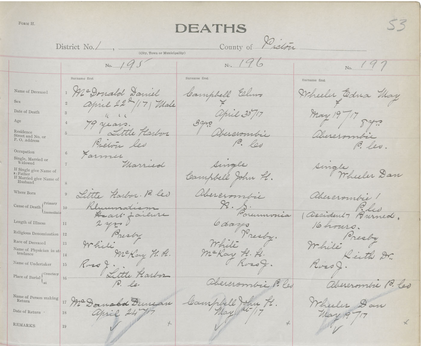 Death Registration: Year: 1917 book: 45 page: 53 number: 197