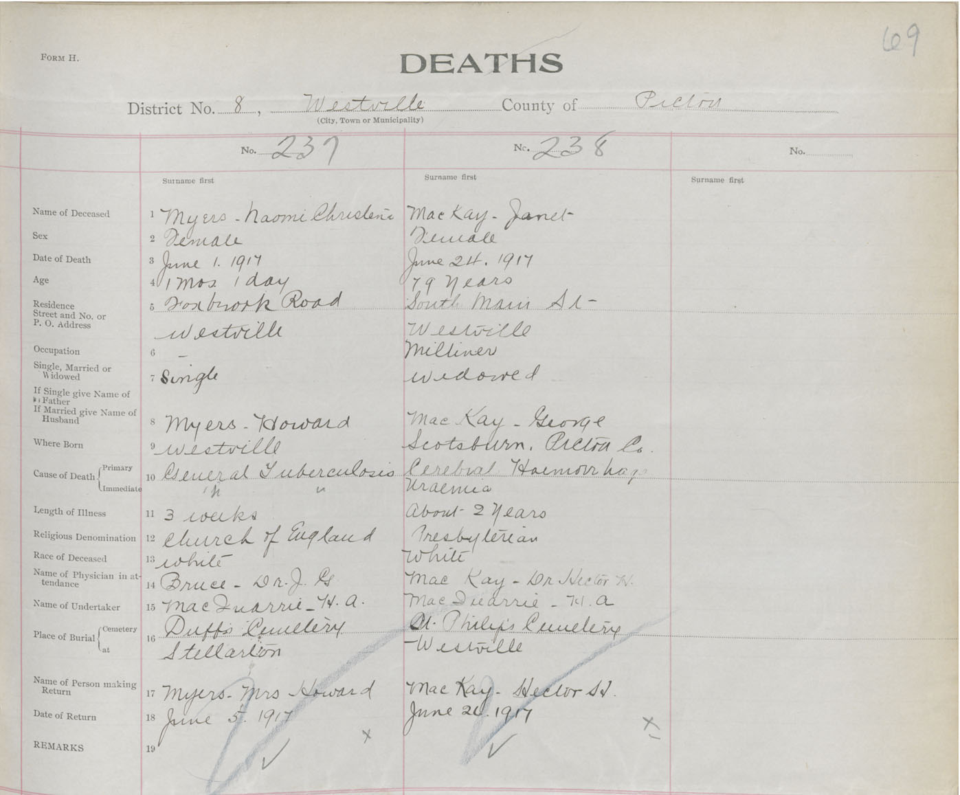 Death Registration: Year: 1917 book: 45 page: 69 number: 238