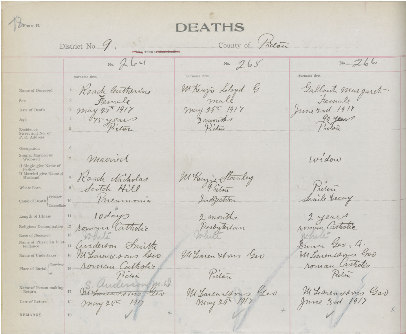 Death Registration: Year: 1917 book: 45 page: 78 number: 266