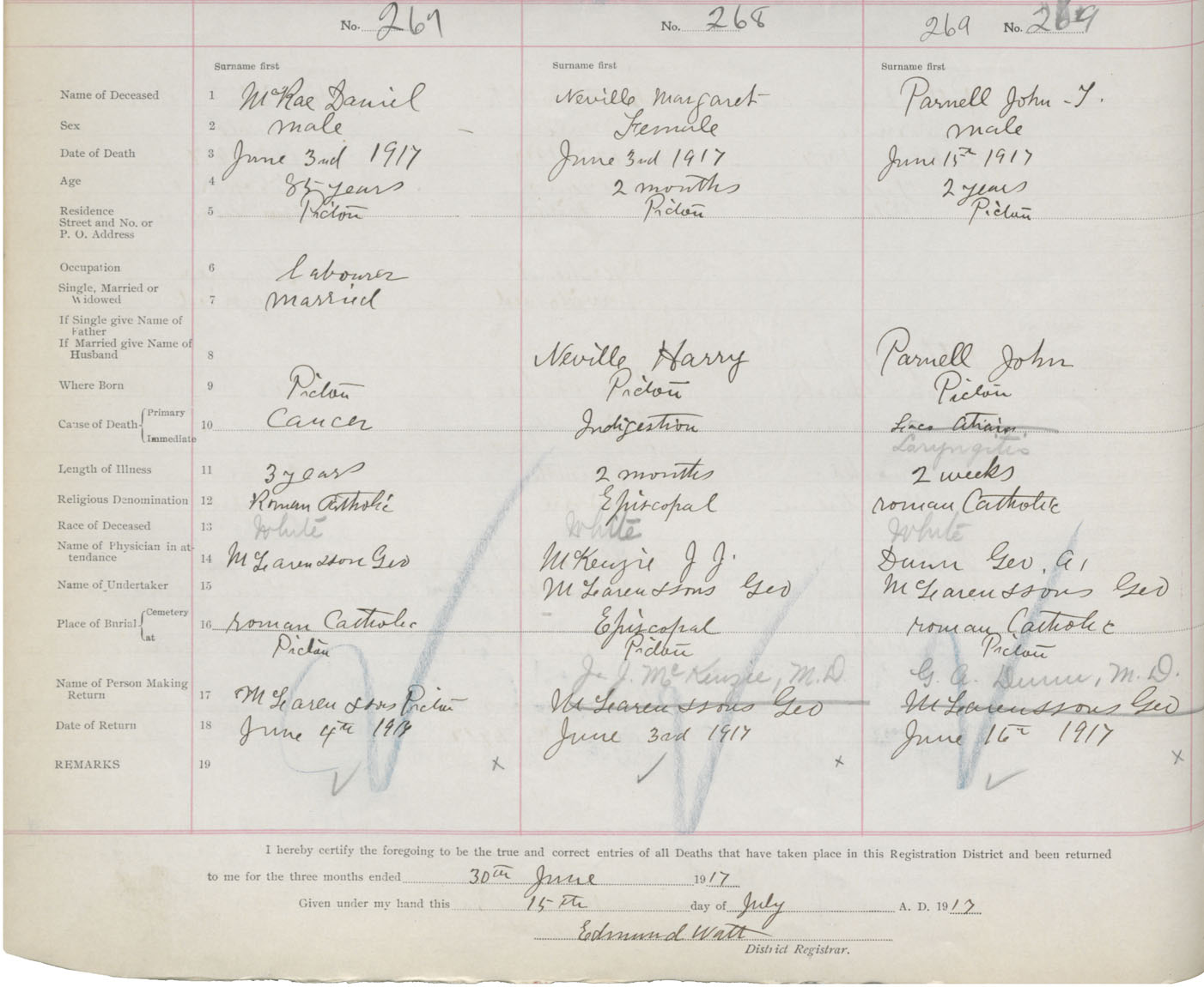 Death Registration: Year: 1917 book: 45 page: 78 number: 269