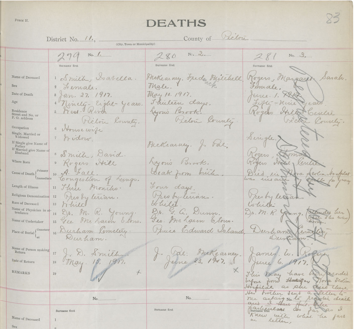 Death Registration: Year: 1917 book: 45 page: 83 number: 281