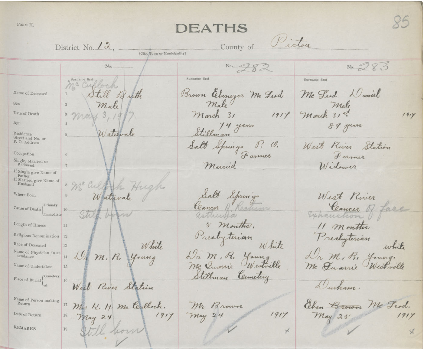 Death Registration: Year: 1917 book: 45 page: 85 number: 283