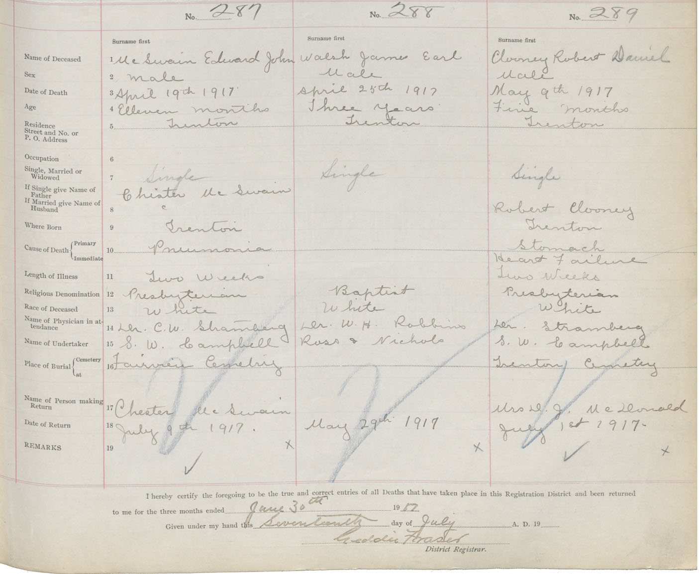 Death Registration: Year: 1917 book: 45 page: 87 number: 289