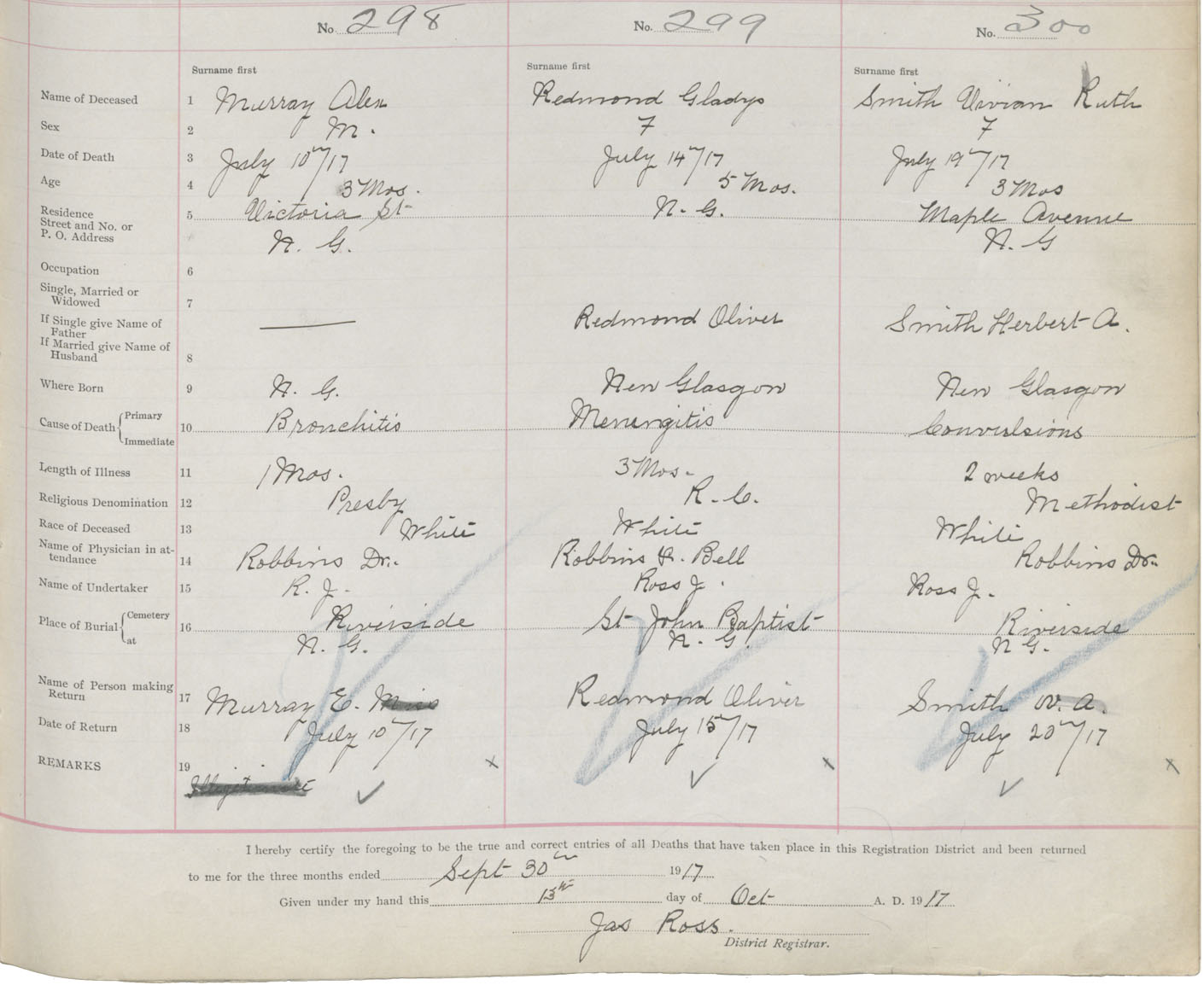 Death Registration: Year: 1917 book: 45 page: 89 number: 300