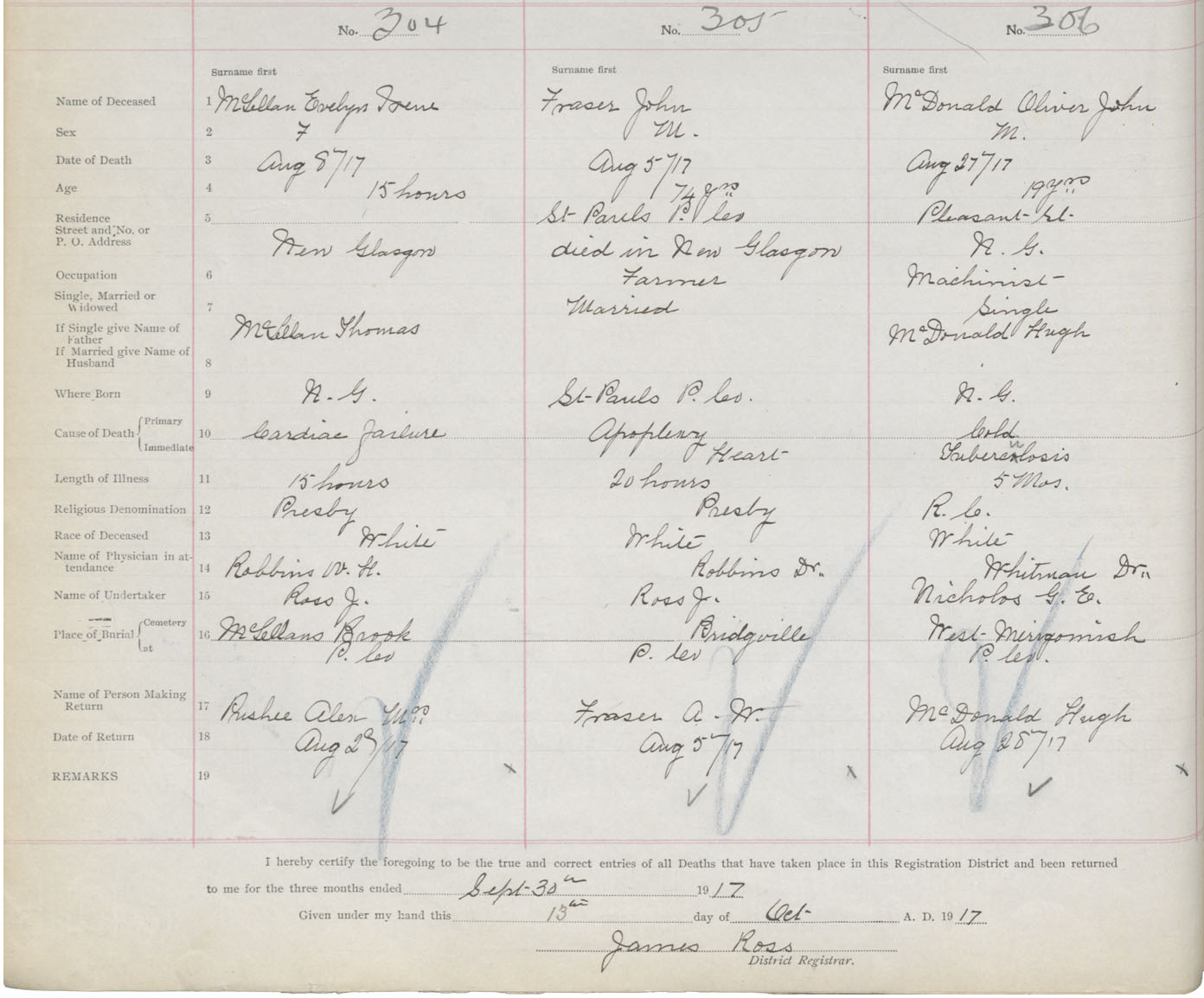 Death Registration: Year: 1917 book: 45 page: 90 number: 306
