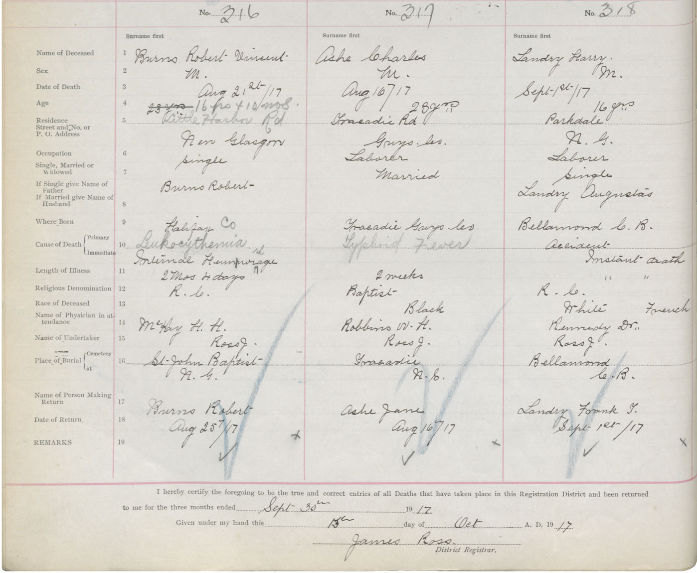 Death Registration: Year: 1917 book: 45 page: 92 number: 318