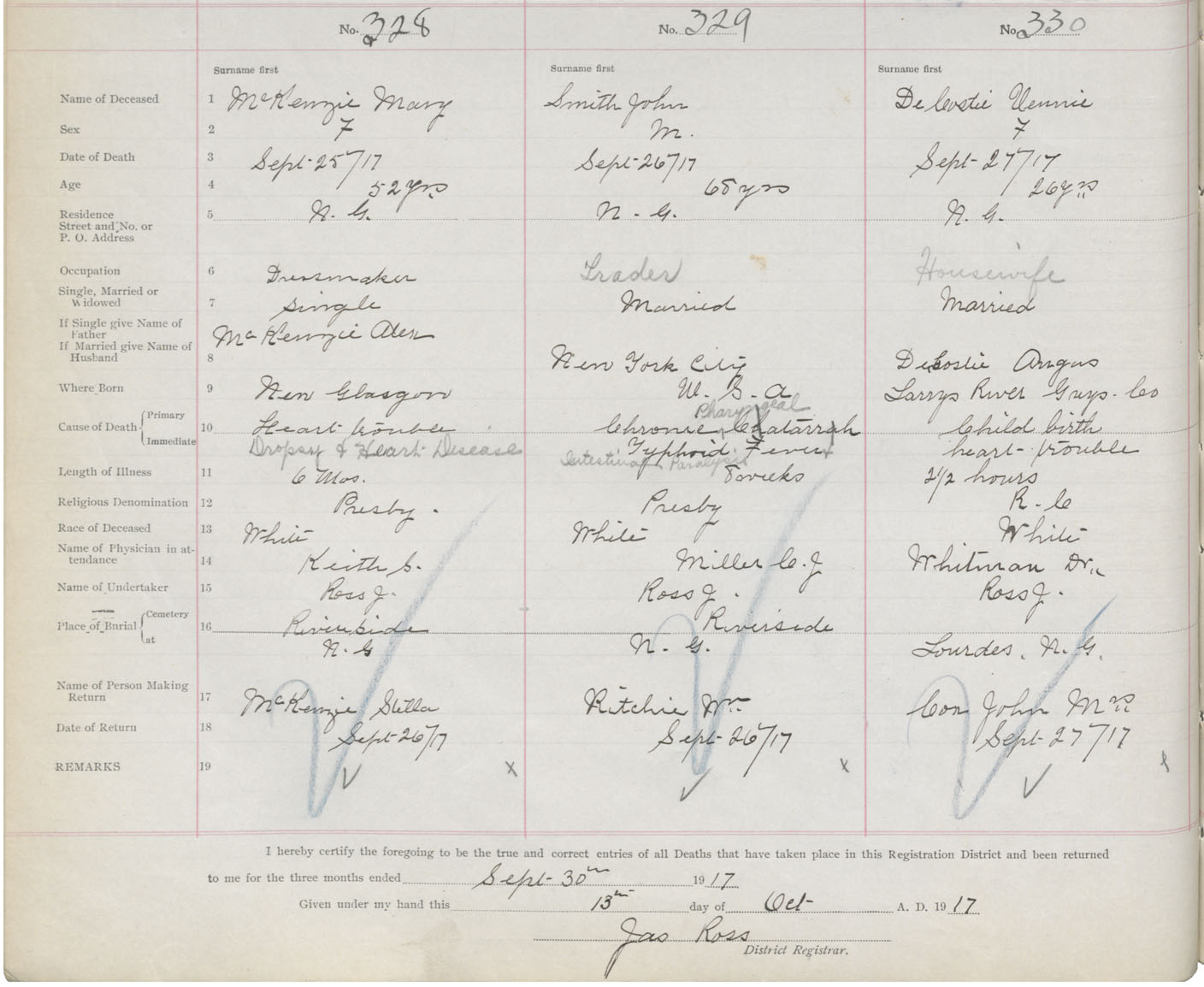 Death Registration: Year: 1917 book: 45 page: 94 number: 330