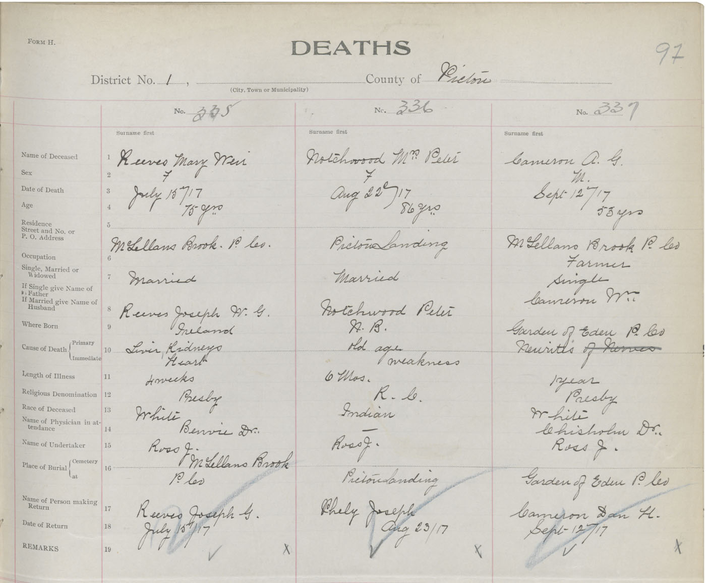 Death Registration: Year: 1917 book: 45 page: 97 number: 337