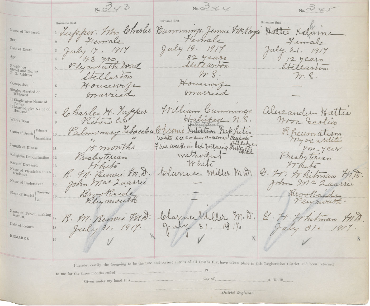 Death Registration: Year: 1917 book: 45 page: 99 number: 345