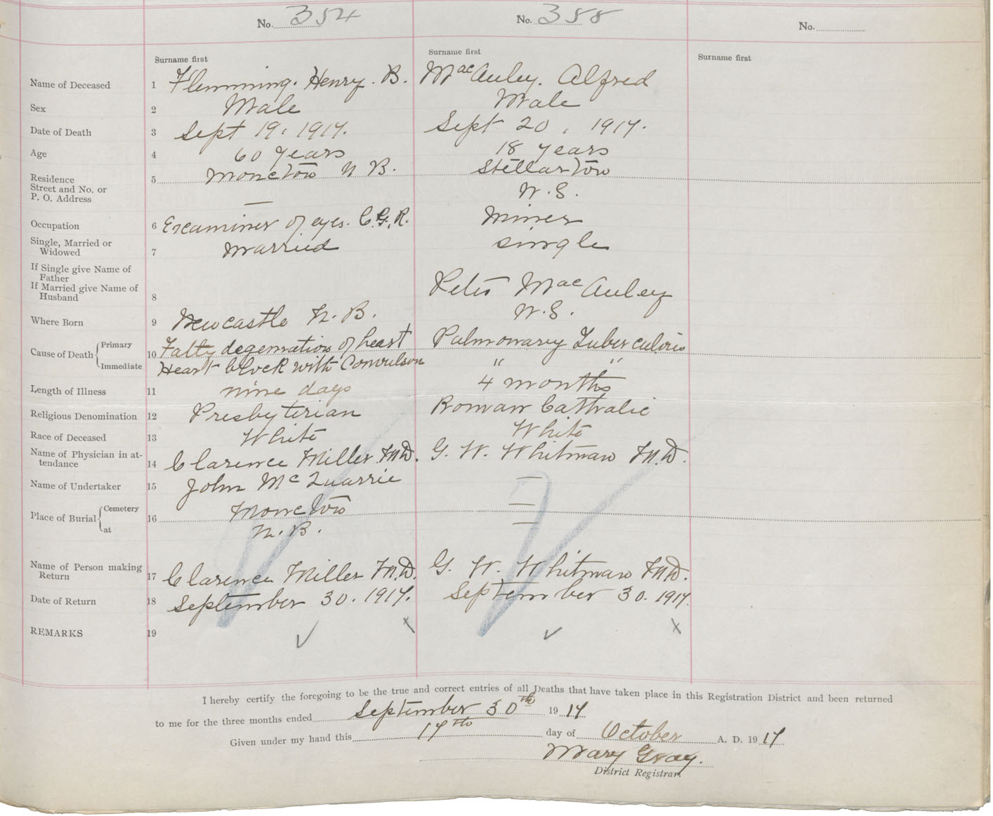 Death Registration: Year: 1917 book: 45 page: 101 number: 355