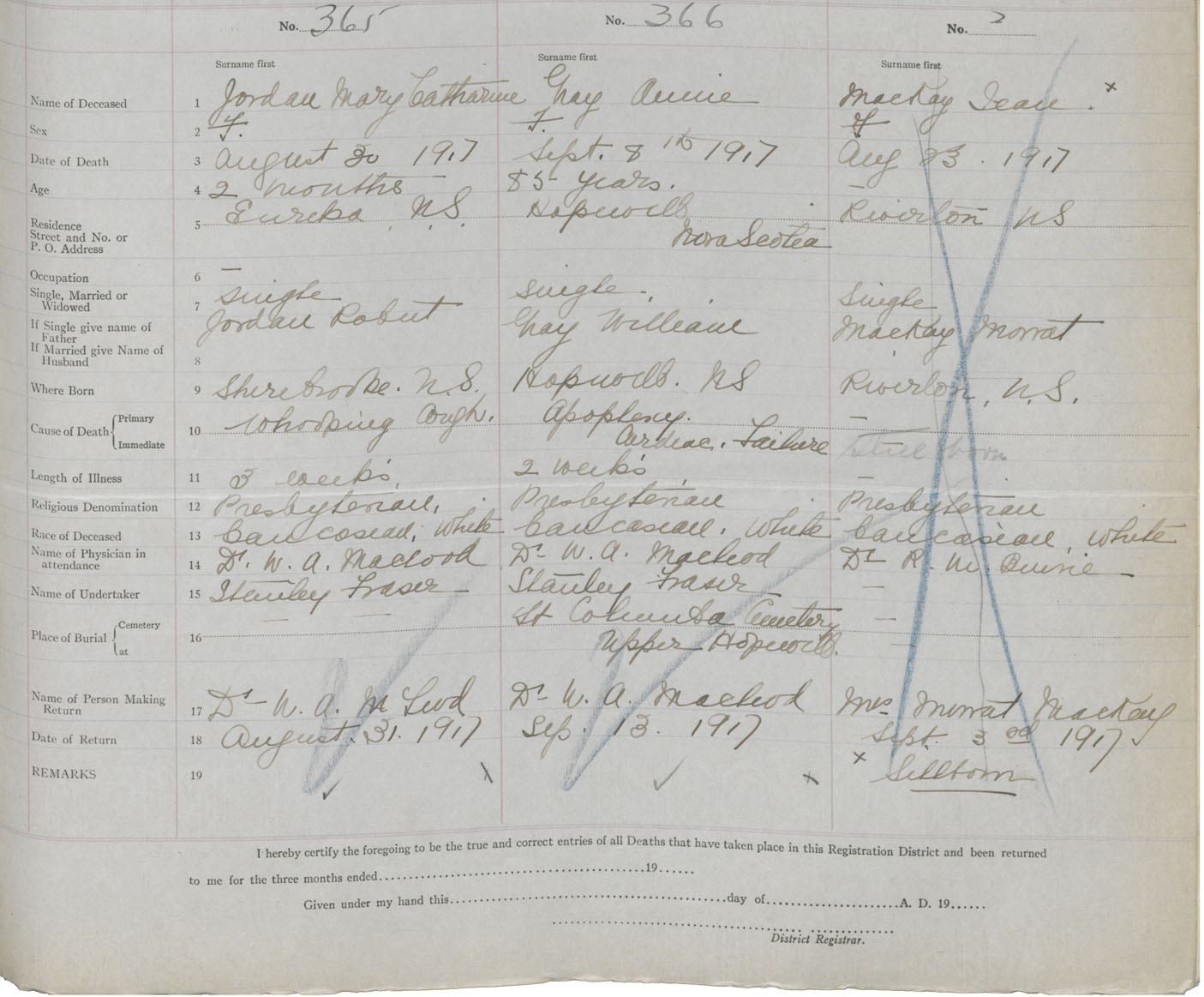 Death Registration: Year: 1917 book: 45 page: 111 number: 366