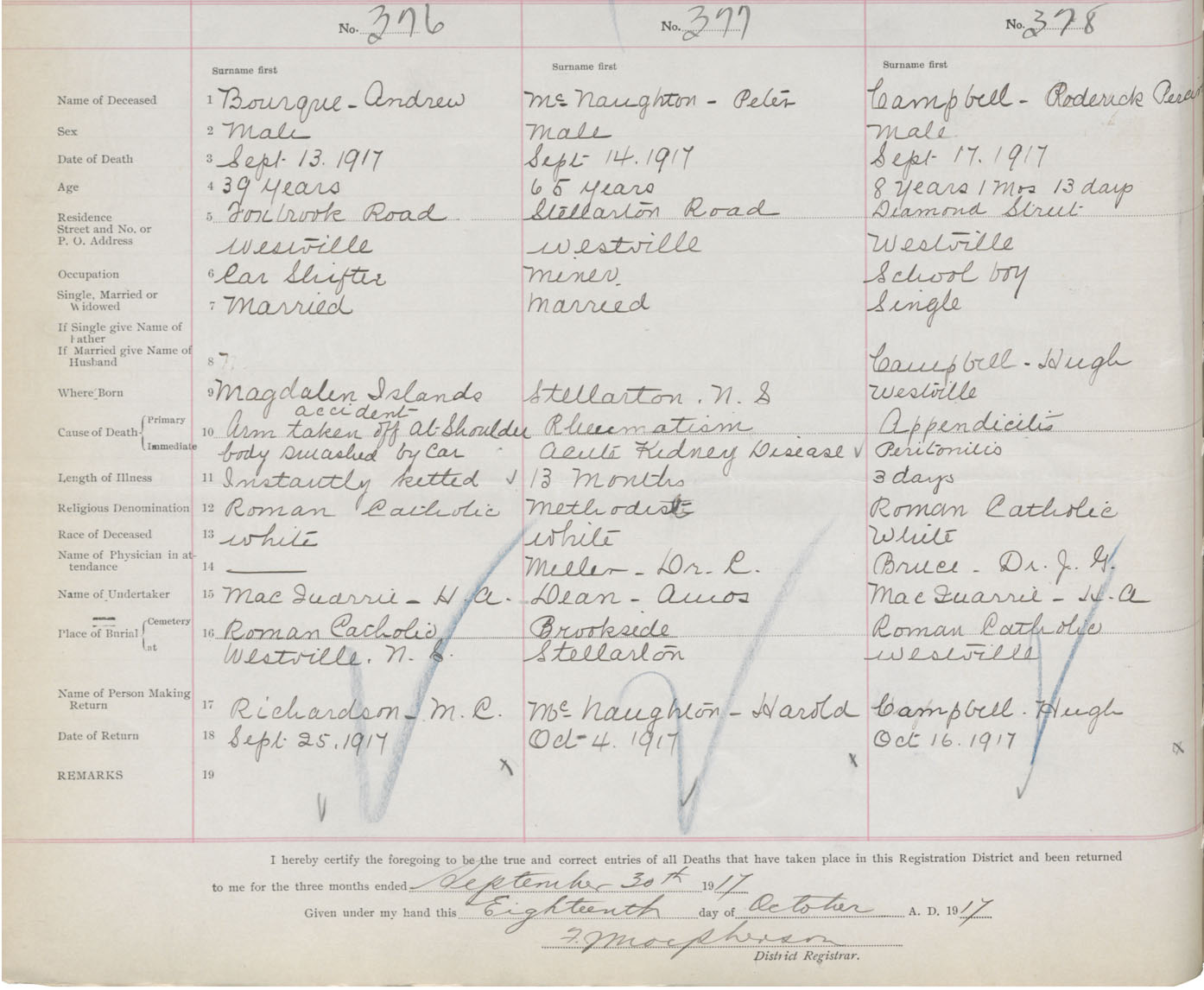 Death Registration: Year: 1917 book: 45 page: 114 number: 378