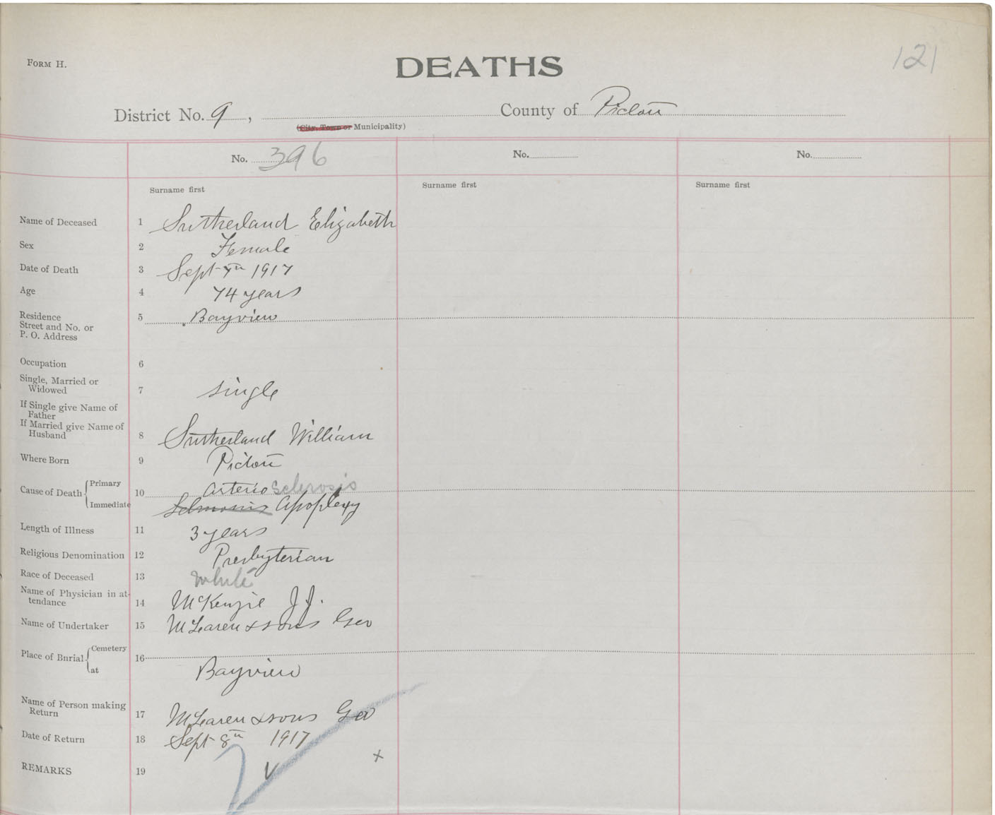 Death Registration: Year: 1917 book: 45 page: 121 number: 396