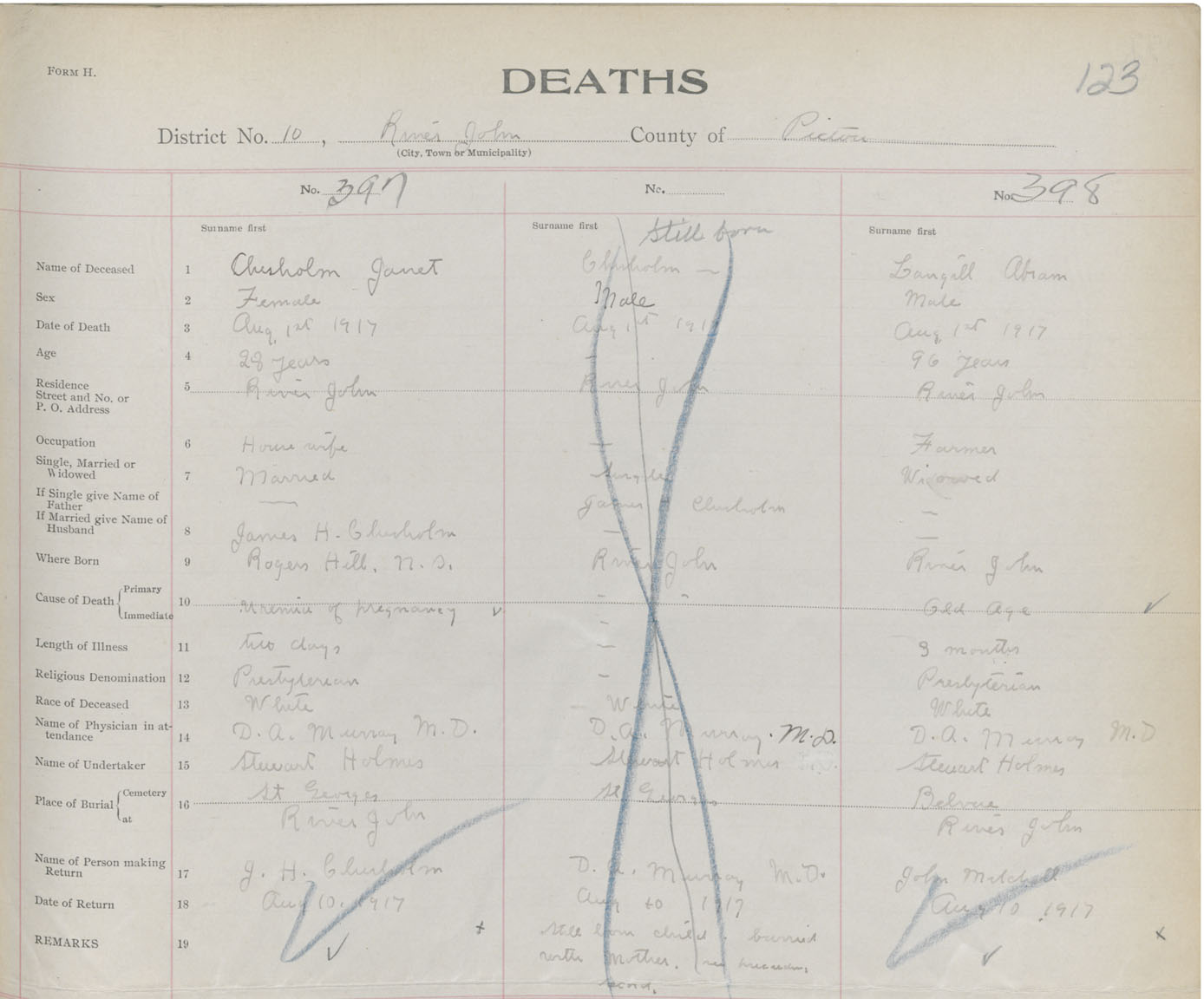 Death Registration: Year: 1917 book: 45 page: 123 number: 398