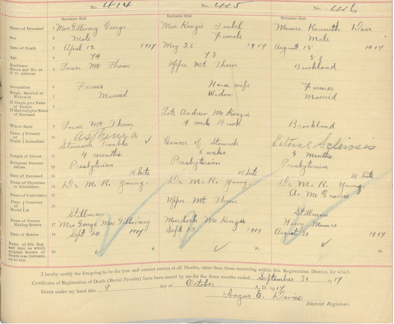 Death Registration: Year: 1917 book: 45 page: 127 number: 416