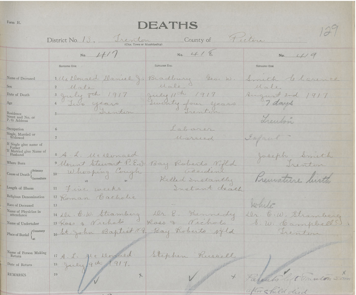 Death Registration: Year: 1917 book: 45 page: 129 number: 419