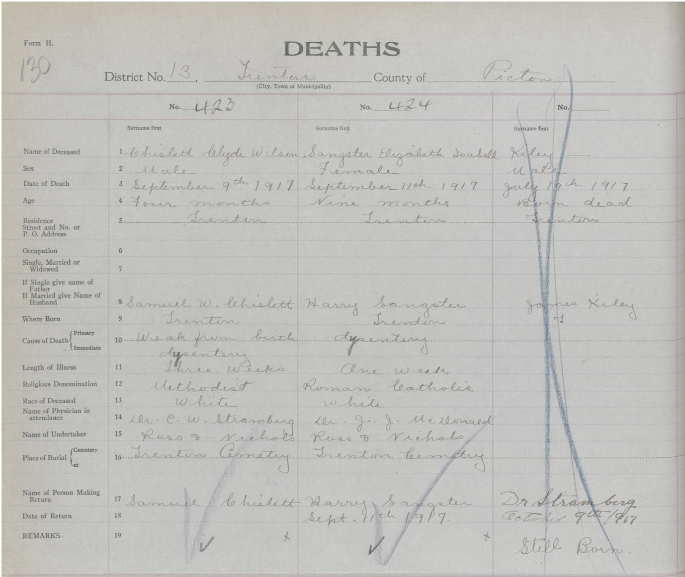 Death Registration: Year: 1917 book: 45 page: 130 number: 424