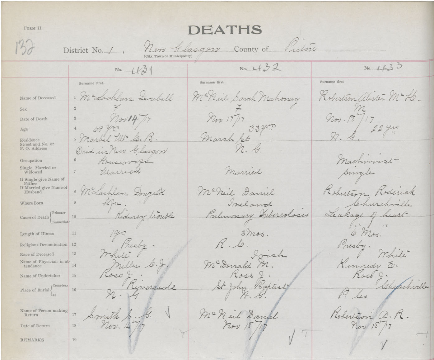Death Registration: Year: 1917 book: 45 page: 132 number: 433