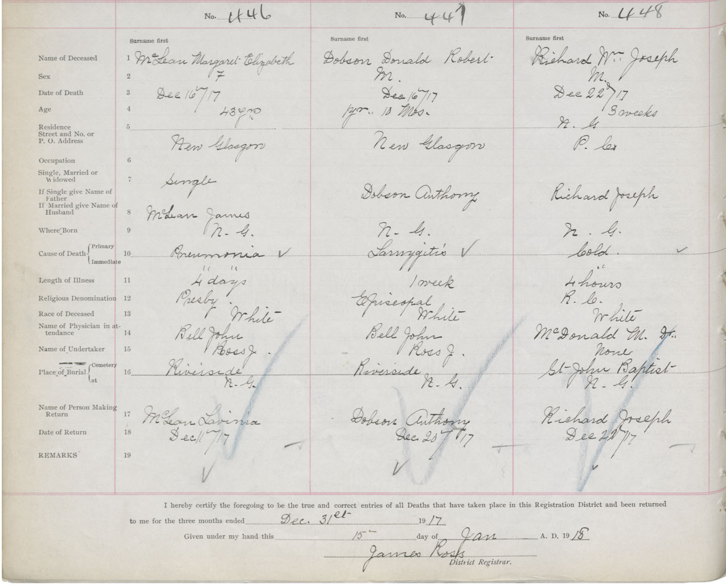 Death Registration: Year: 1917 book: 45 page: 134 number: 448