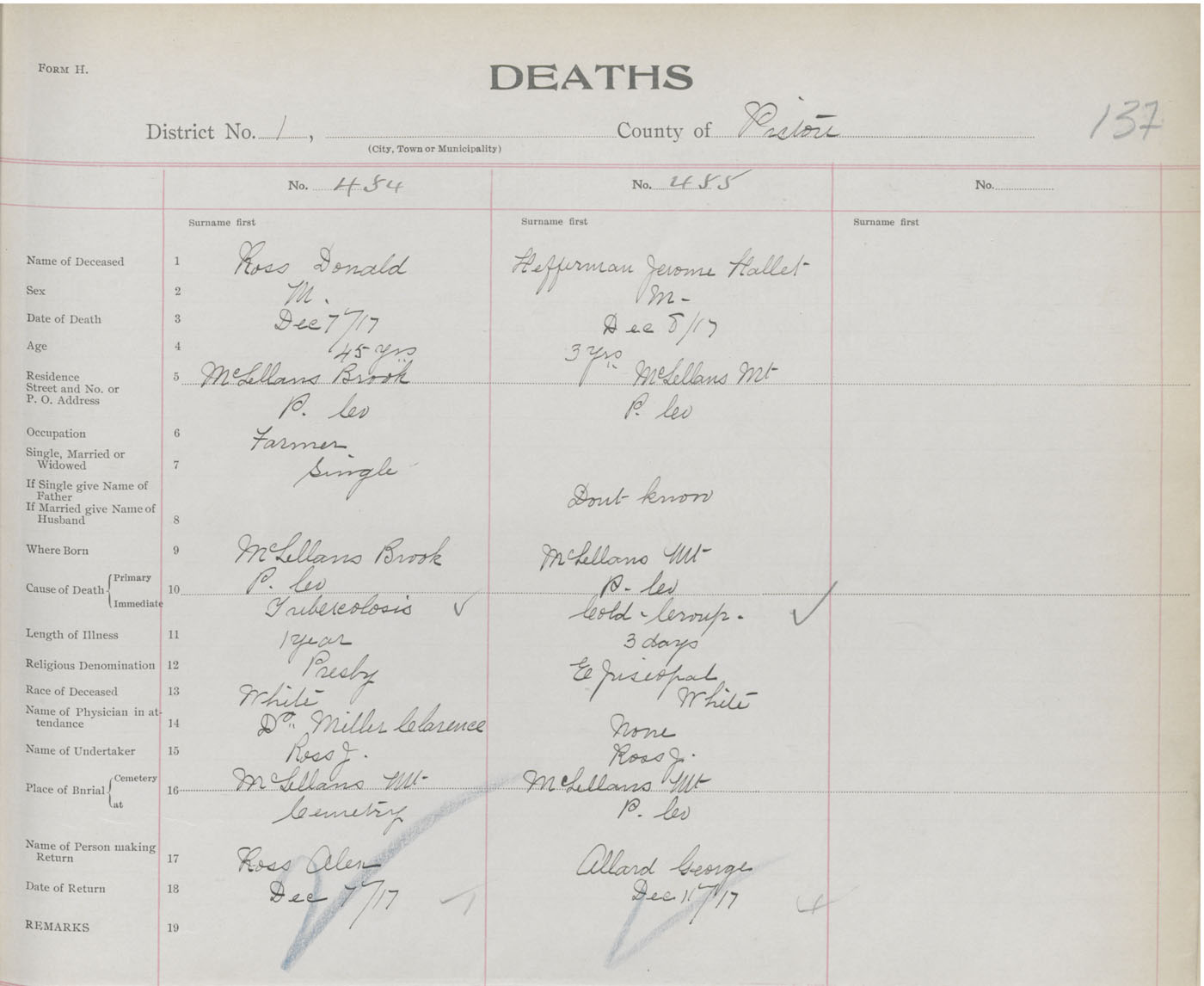 Death Registration: Year: 1917 book: 45 page: 137 number: 455