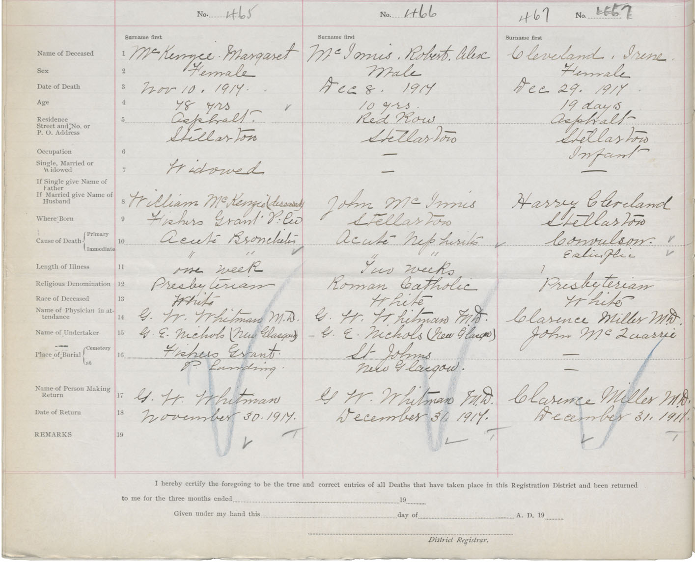 Death Registration: Year: 1917 book: 45 page: 140 number: 467