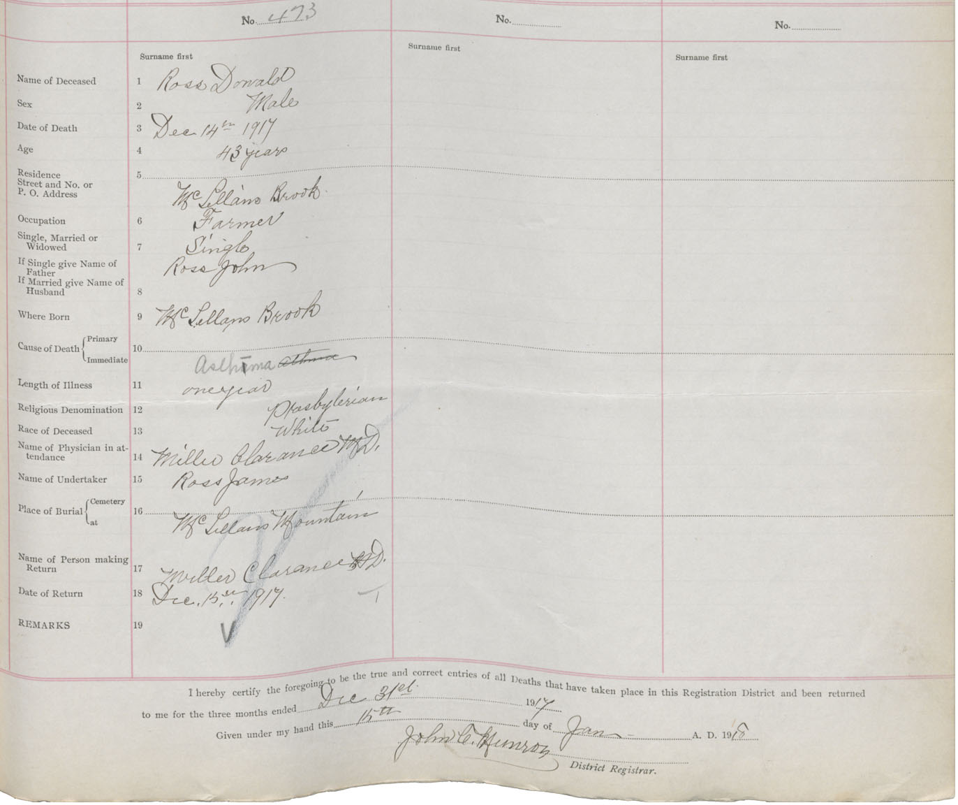 Death Registration: Year: 1917 book: 45 page: 143 number: 473