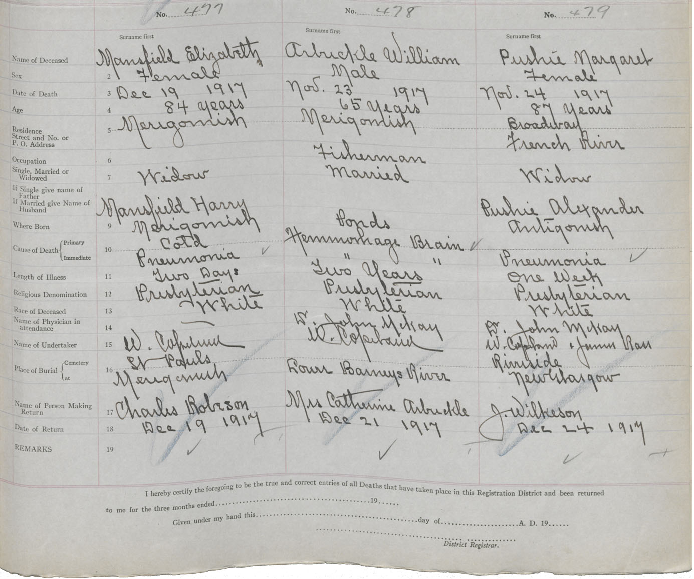 Death Registration: Year: 1917 book: 45 page: 145 number: 477